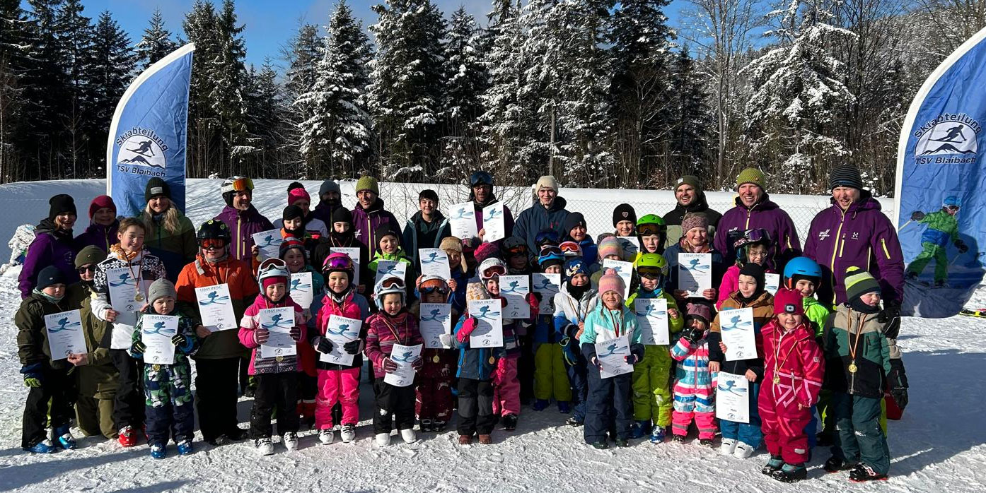 Nach mehreren witterungsbedingten Terminverschiebungen konnte die letzten zwei Wochenende der Skikurs des TSV Blaibach stattfinden. Zahlreiche Kinder verbrachten zusammenmit ihren Skilehrern insgesamt vier Vormittage am Riedlberg, um ihr skifahrerisches Können zu verbessern oder um es erstmals zu erlernen. Am letzten Sonntag konnten dann die Eltern beim Abschlussrennen die Fortschritte ihrer Sprösslinge beim Abschlussrennen bewundern. Dass die Kids beim Rennen natürlich frenetisch von ihren Eltern angefeuert wurden, versteht sich von selbst. Ganz stolz präsentierten die Kinder beim Siegerfoto ihre Urkunden und Medaillen.